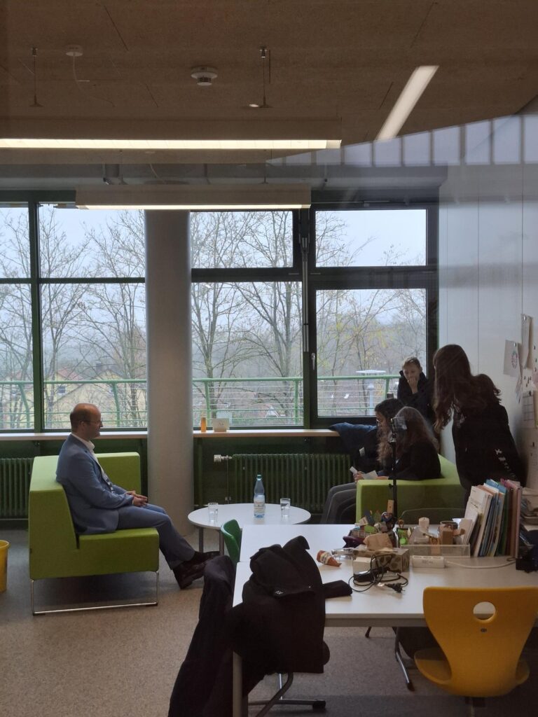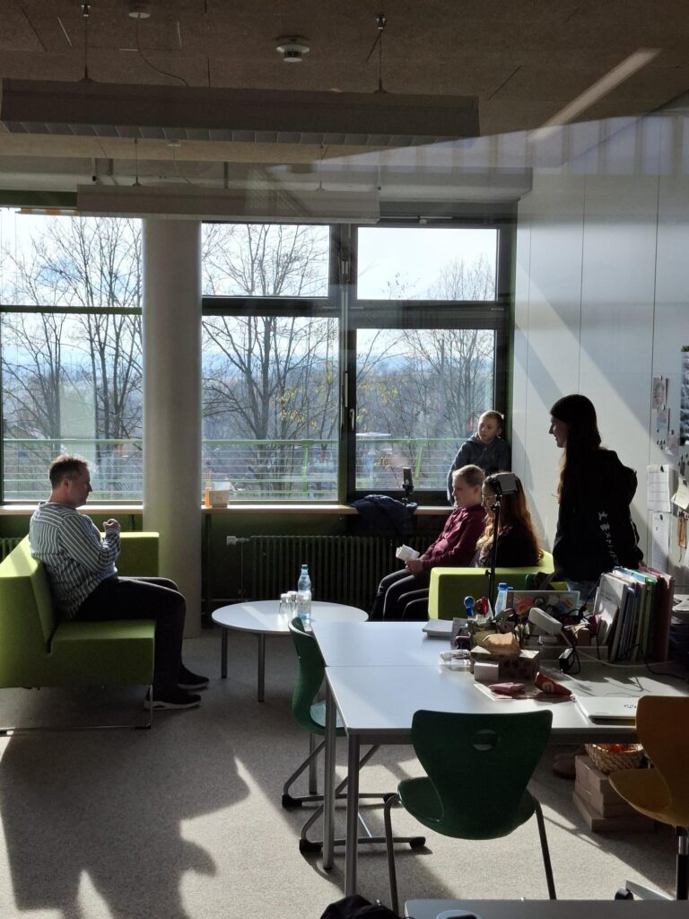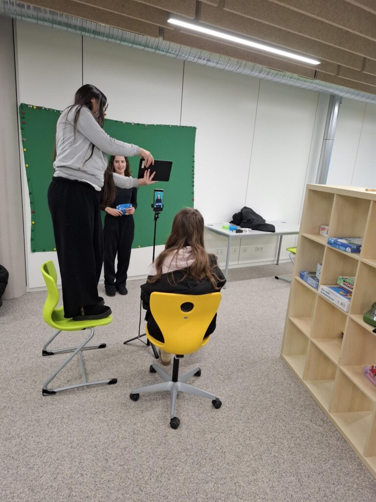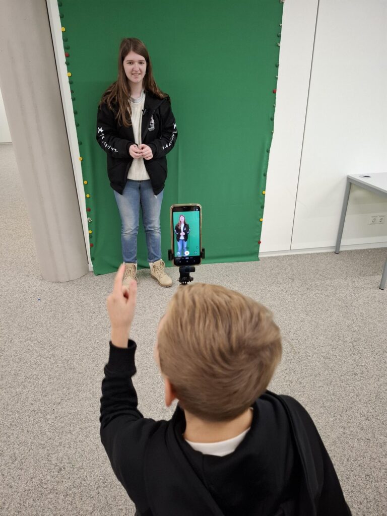 Zunächst beschäftigten sich die Kids mit dem Aufbau der Sendung. Es wurde sich für einen Namen der Sendung entschieden und ein Logo entworfen. Mehrere Wochen lang recherchierten die Schülerinnen und Schüler, was in Rothenburg und Umgebung passiert und bereichtenswert ist. In einer demokratischen Abstimmung legte sich die Klasse auf drei Themen fest. In Kleingruppen wurde das jeweilige Thema vertieft. Interviews wurden geplant, die Interviewpartner aus Politik und Gesellschaft eingeladen. Professionell führten die Schülerinnen und Schüler mehrere Interviews. Videos wurden erstellt und geschnitten, Texte für die Off-Sprecher geschrieben. Die Moderationstexte haben die Jugendlichen ebenfalls selbst geschrieben und in Eigenregie mit Hilfe eines Greenscreens aufgenommen. Die Lernlandschaft der Siebtklässler wirkte dabei manchmal wie ein kleines Fernsehstudio. Entstanden ist eine informative und interessante Nachrichtensendung, die über aktuelle Geschehnisse in Rothenburg und im Landkreis Ansbach berichtet. Der Beitrag wurde gerade noch rechtzeitig Anfang Dezember bei der Bundeszentrale für politische Bildung eingereicht.