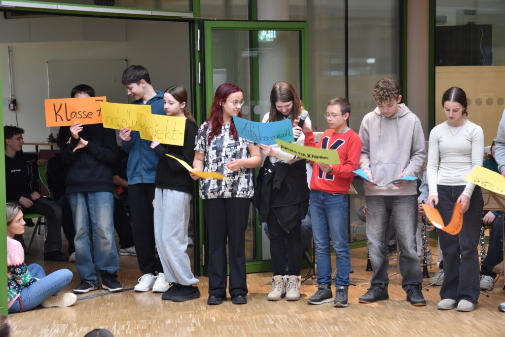 Die 7a stellte ihr Projekt vor, in dem sie ein Video über aktuelle Themen der Stadt gedreht haben. Das Video war im Stil der Logo Nachrichten aufgebaut und behandelte wichtige Themen wie den Erhalt des Rothenburger Krankenhauses und die Oberbürgermeisterwahl. Mit ihrem Beitrag nehmen sie an einem Wettbewerb teil, und wir wünschen ihnen viel Erfolg!