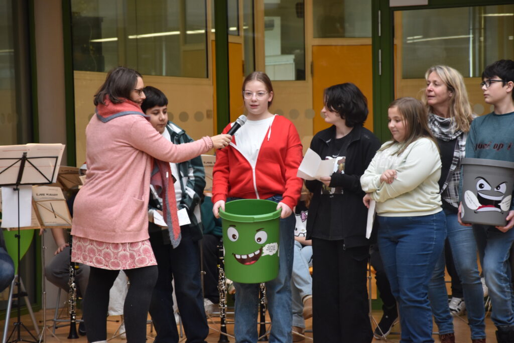 Zusätzlich präsentierte die 7GT, welche Mülleimer in die Klassenzimmer kommen sollen und hatte dafür verschiedene Aufkleber und Texte vorbereitet. Ihr Engagement für die Umwelt ist ein tolles Beispiel dafür, wie Schüler aktiv zur Verbesserung ihrer Schule beitragen können.