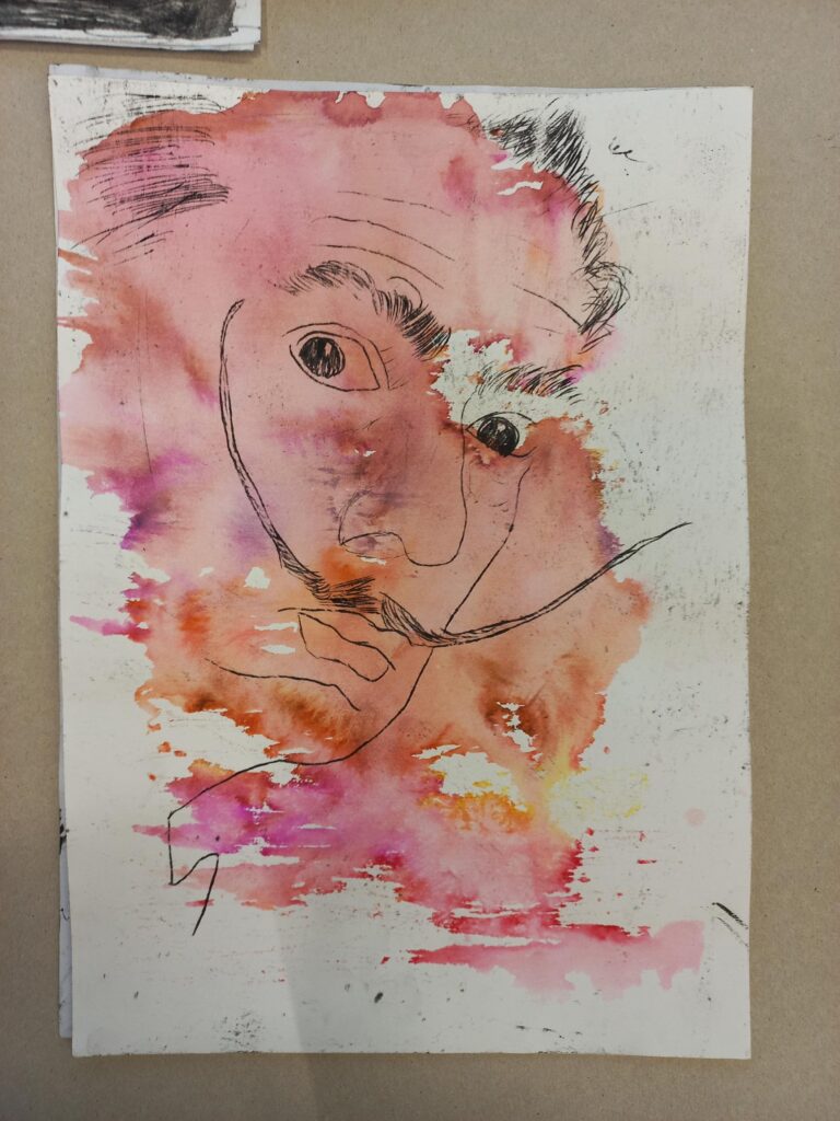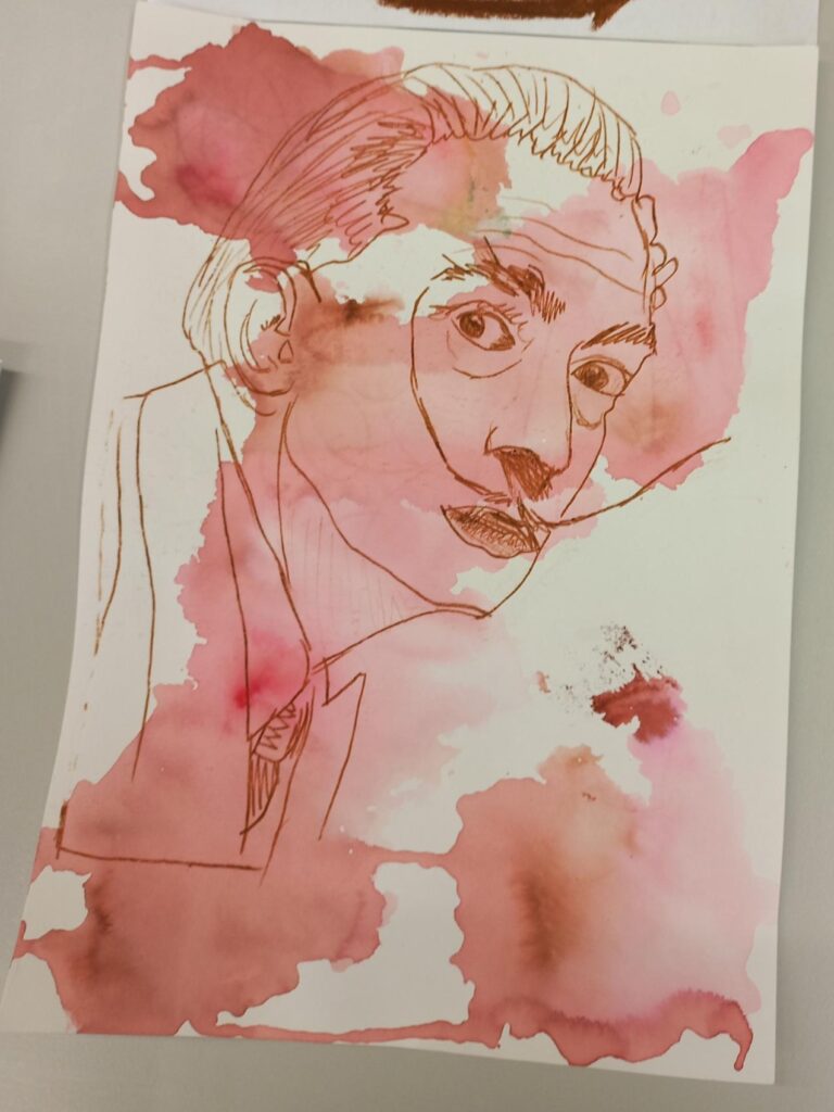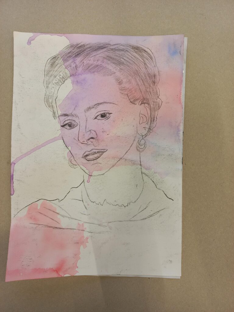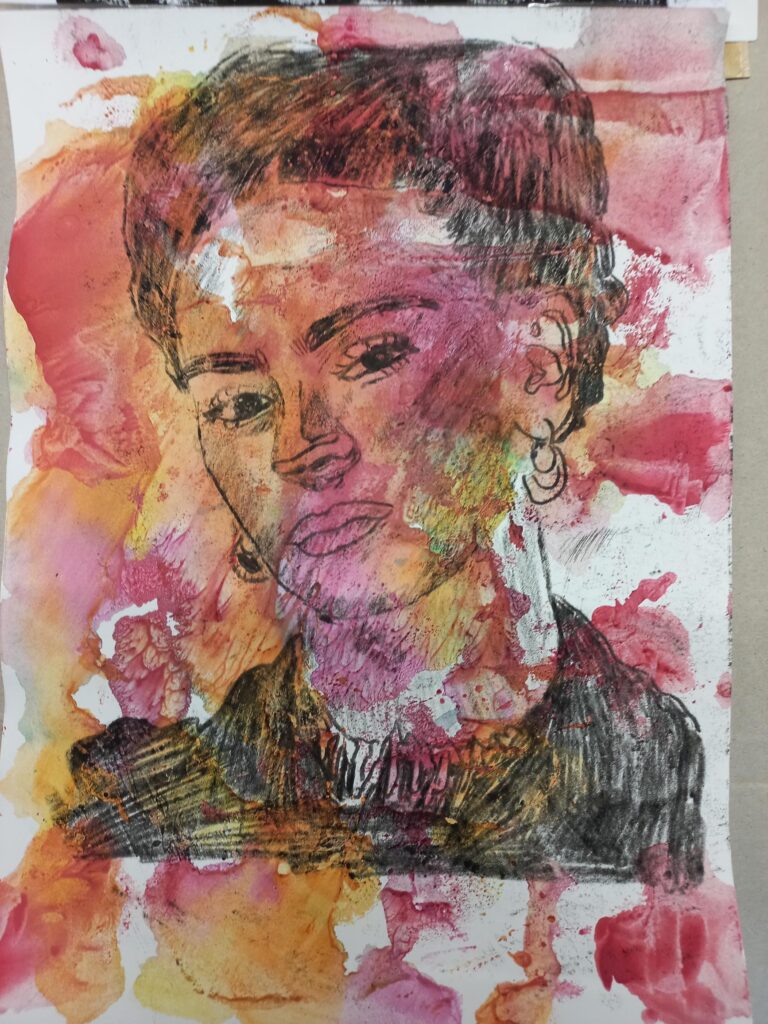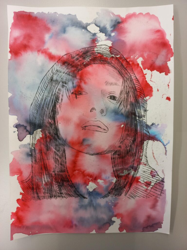 Die Schülerinnen und Schüler der Klassen 9a und 9aM haben im Kunstunterricht mit wasserlöslichen Werkmitteln experimentiert. Hierbei sind schöne Hintergründe enstanden, auf welche dann verschiedene Porträts übertragen wurden. Dafür nutzten die Schülerinnen und Schüler die Technik der Ölkreidemonotypie. Die Arbeit hat allen viel Spaß gemacht – und die entstandenen Ergebnisse können sich wirklich sehen lassen.